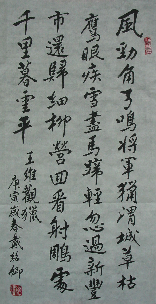 風勁角弓鳴,將軍獵渭城。草枯鷹眼疾,雪盡馬蹄輕。