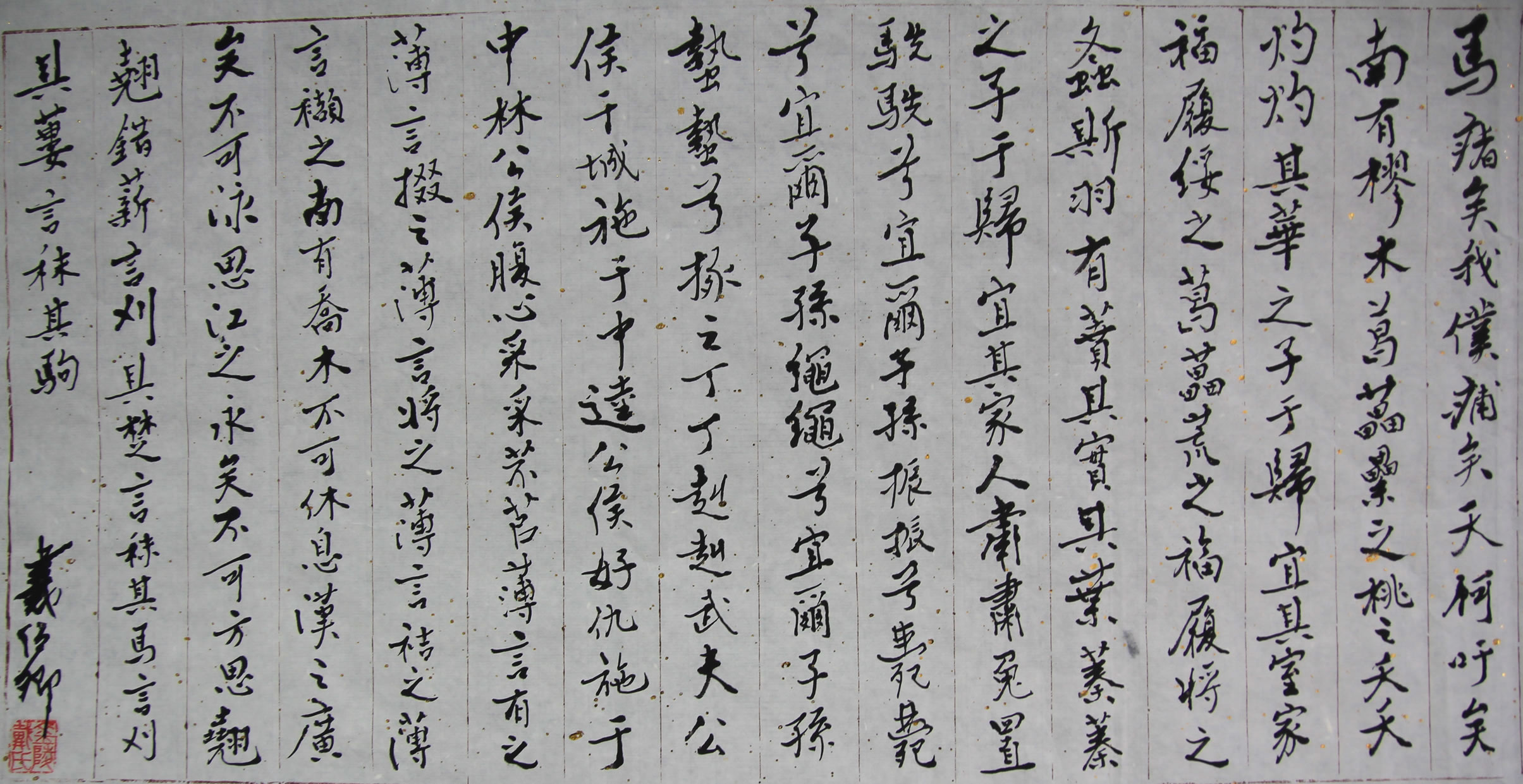 戴紹卿老師書法作品--170905/IMG_5448.png上一頁 | 首頁 | 下一頁《毛詩經證》 陟彼砠矣,我馬瘏矣,我僕痡矣,云何吁矣! 樛木 南有樛木,葛藟累之。樂只君子,福履綏之。 南有樛木,葛藟荒之。樂只君子,福履將之。 南有樛木,葛藟縈之。樂只君子,福履成之。 螽斯 螽斯羽,詵詵兮。宜爾子孫振振兮。 螽斯羽,薨薨兮。宜爾子孫繩繩兮。 螽斯羽,揖揖兮。宜爾子孫蟄蟄兮。 桃夭 桃之夭夭,灼灼其華。之子于歸,宜其室家。 桃之夭夭,有蕡其實。之子于歸,宜其家室。 桃之夭夭,其葉蓁蓁。之子于歸,宜其家人。 兔罝 肅肅兔罝,椓之丁丁。赳赳武夫,公侯干城。 肅肅兔罝,施于中逵。赳赳武夫,公侯好仇。 肅肅兔罝,施于中林。赳赳武夫,公侯腹心。 芣苡 采采芣苡,薄言采之;采采芣苡,薄言有之。 采采芣苡,薄言掇之;采采芣苡,薄言捋之。 采采芣苡,薄言祮之;采采芣苡,薄言擷之。 漢廣 南有喬木,不可休息。漢有游女,不可求思。 漢之廣矣,不可泳思。江之永矣,不可方思。 翹翹錯薪,言刈其楚。之子于歸,言秣其馬。 漢之廣矣,不可泳思。江之永矣,不可方思。 翹翹錯薪,言刈其蔞。之子于歸,言秣其駒。 漢之廣矣,不可泳思。江之永矣,不可方思。 |