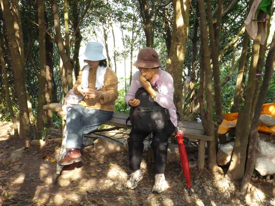 0950--1002 【長壽坡叉路】,右往大崙尾山,休息吃水果後,取直循稜走步道下行。