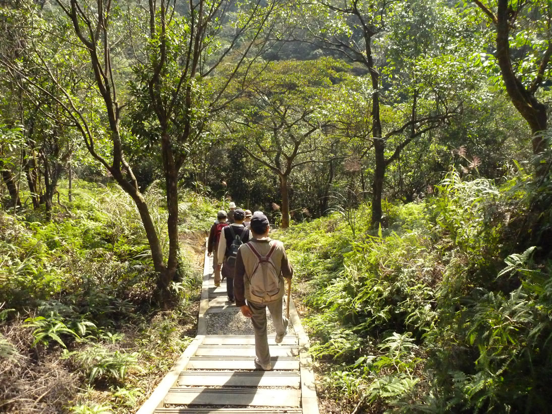 0950--1002 【長壽坡叉路】,右往大崙尾山,休息吃水果後,取直循稜走步道下行。
