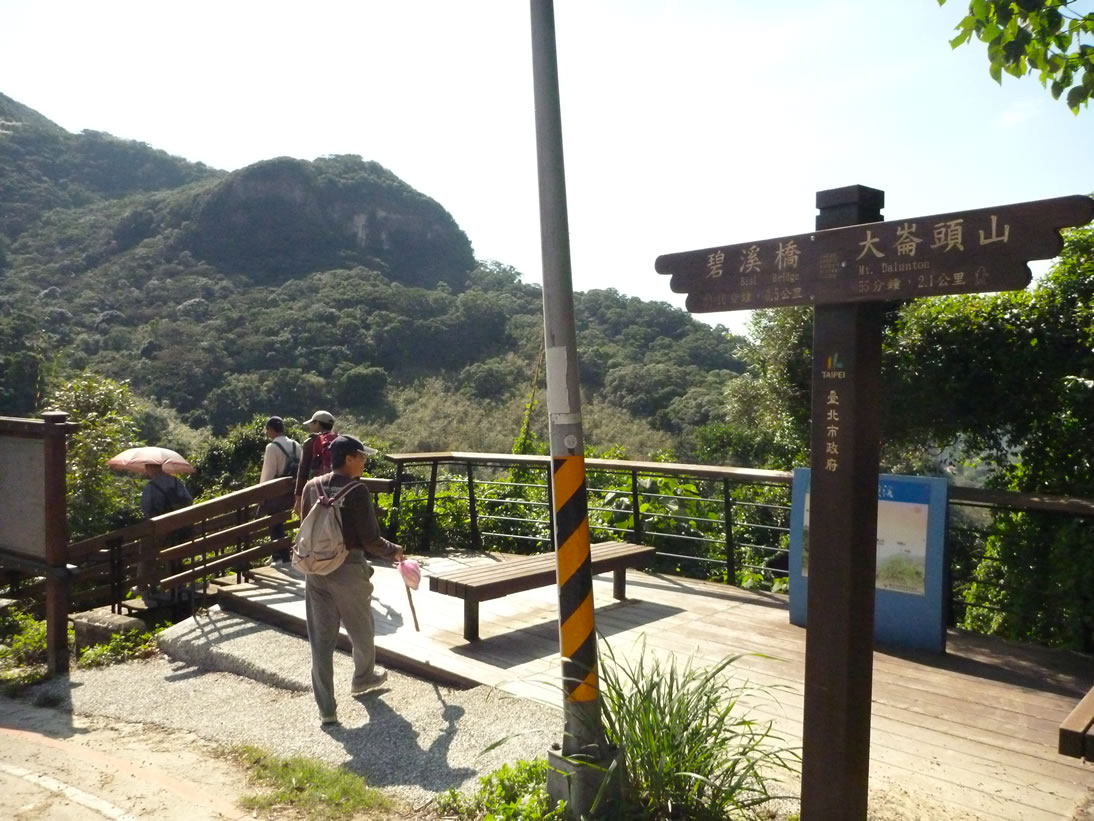 1256 叉路,路口有台北市政府產業發展局的解說牌,取右進入捷徑步道,離開碧溪產業道路。